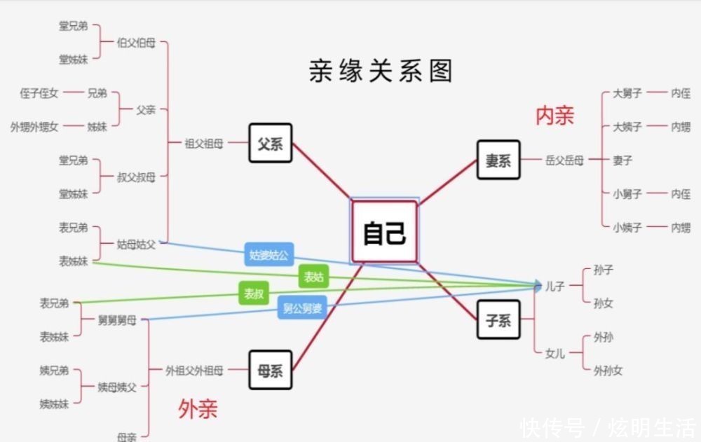 简单来说就是:父族四、母族三、妻族二。如果用一张图表来表示就是这样的: